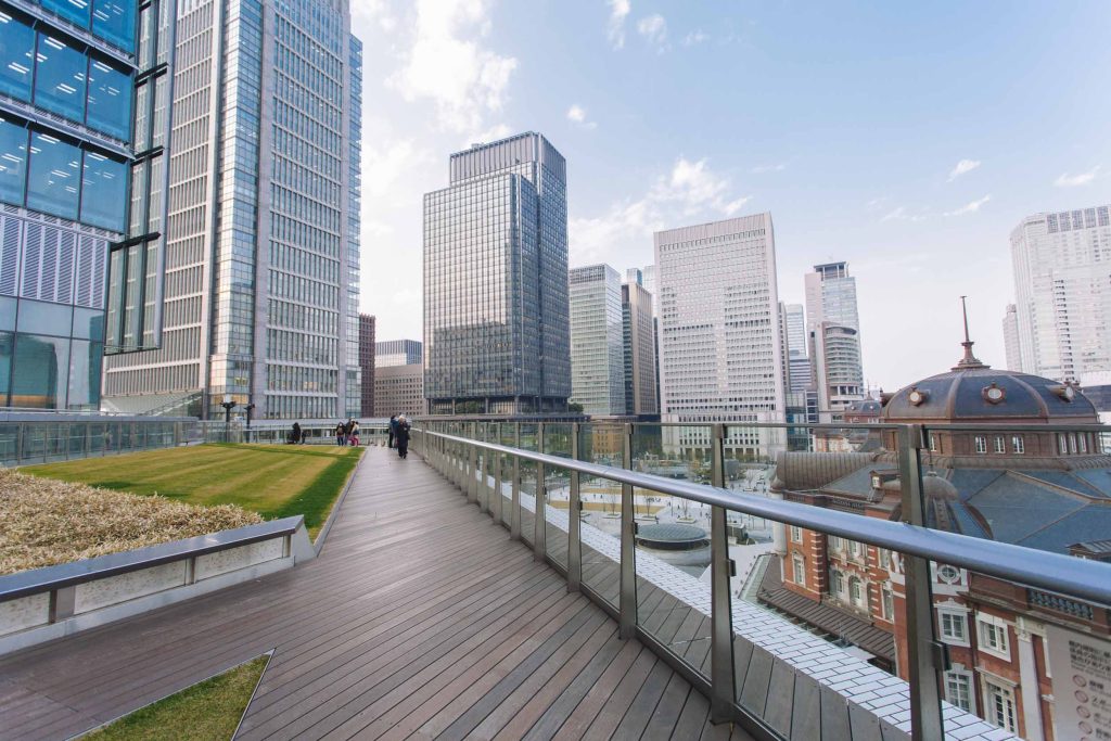 Ít ai biết rằng, trong list các địa điểm chụp ảnh đẹp ở Tokyo có một địa điểm được ẩn giấu, đó là khu vườn sân thượng “KITTE Garden”, nơi du khách có thể ngắm một góc quang cảnh của Marunouchi. Được kết nối được trực tiếp với ga JR Tokyo, khu vườn rộng đến 1.500m2 này mỗi ngày luôn nhộn nhịp người mua sắm và thực khách mỗi ngày. Ở đó có những chiếc ghế dài được thiết kế độc đáo trông giống như những miếng pho mát khổng lồ. Cạnh đó là bãi cỏ được chăm sóc đẹp mắt, tạo nên bầu không khí dễ chịu. Phía bên dưới của khu vườn sân thượng chính là Tòa nhà Marunouchi ga của Tokyo hiện lên với sắc đỏ gạch sang trọng. Đặc biệt, khi về đêm di sản văn hóa này được chiếu sáng bằng những tia sáng rực rỡ, tạo nên một cảnh tượng vô cùng ấn tượng.